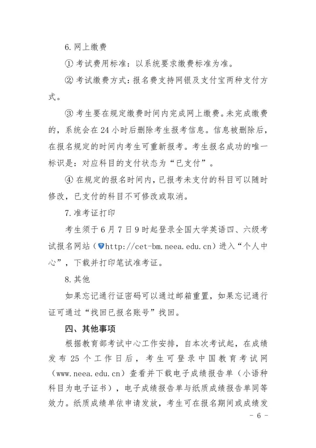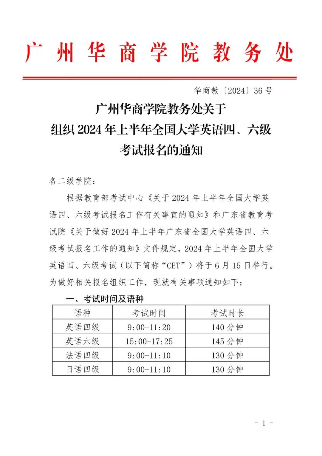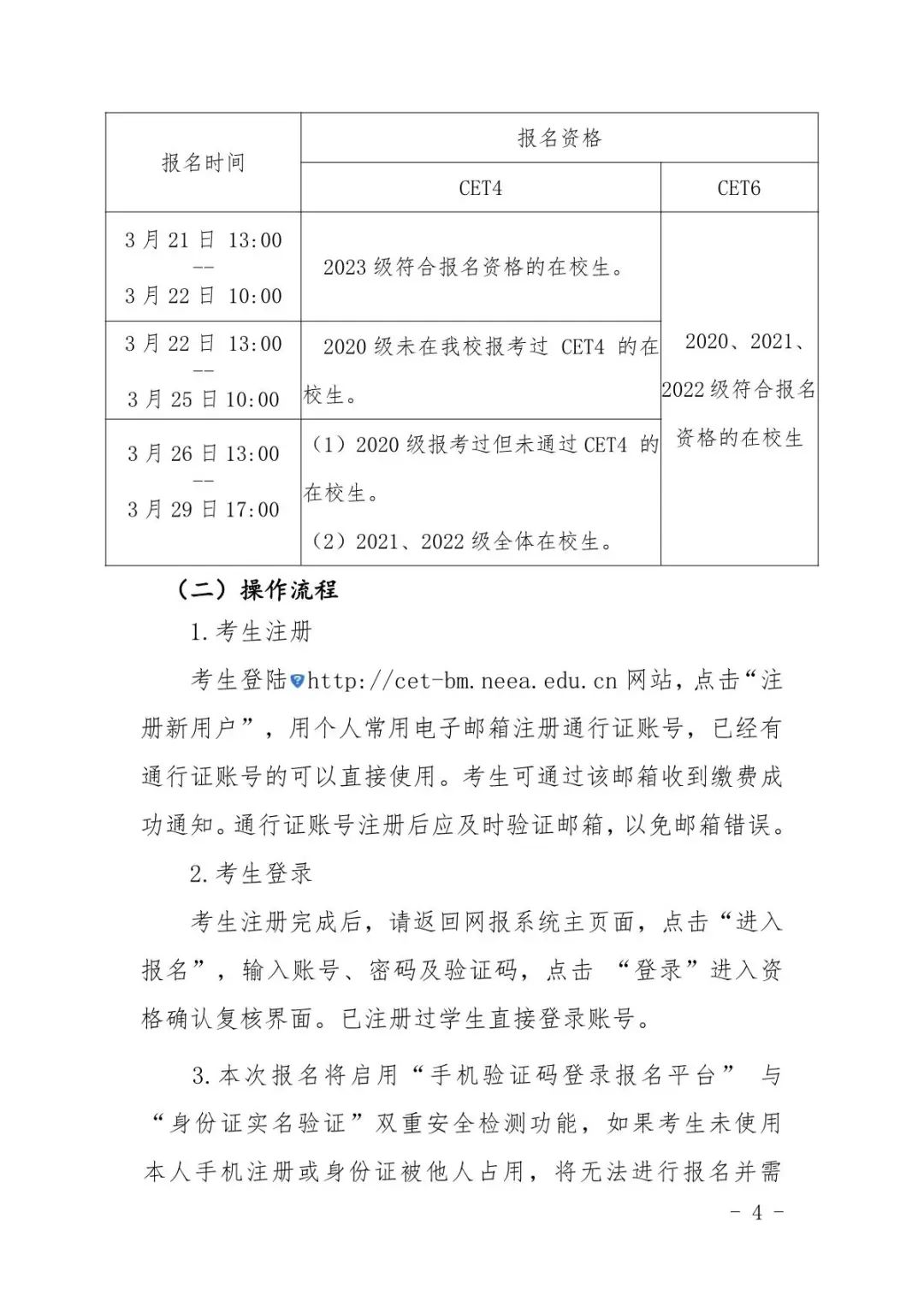 关于组织2024年上半年全国大学英语四、六级考试报名的通知
