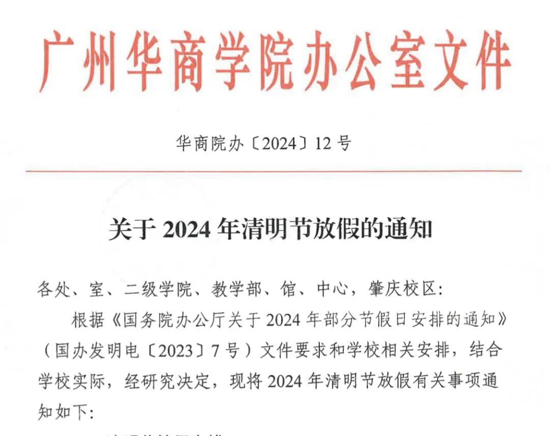 2024年4月4日(星期四)至4月6日(星期六)放假调休,共3天。4月7日(星期日)上班上课。