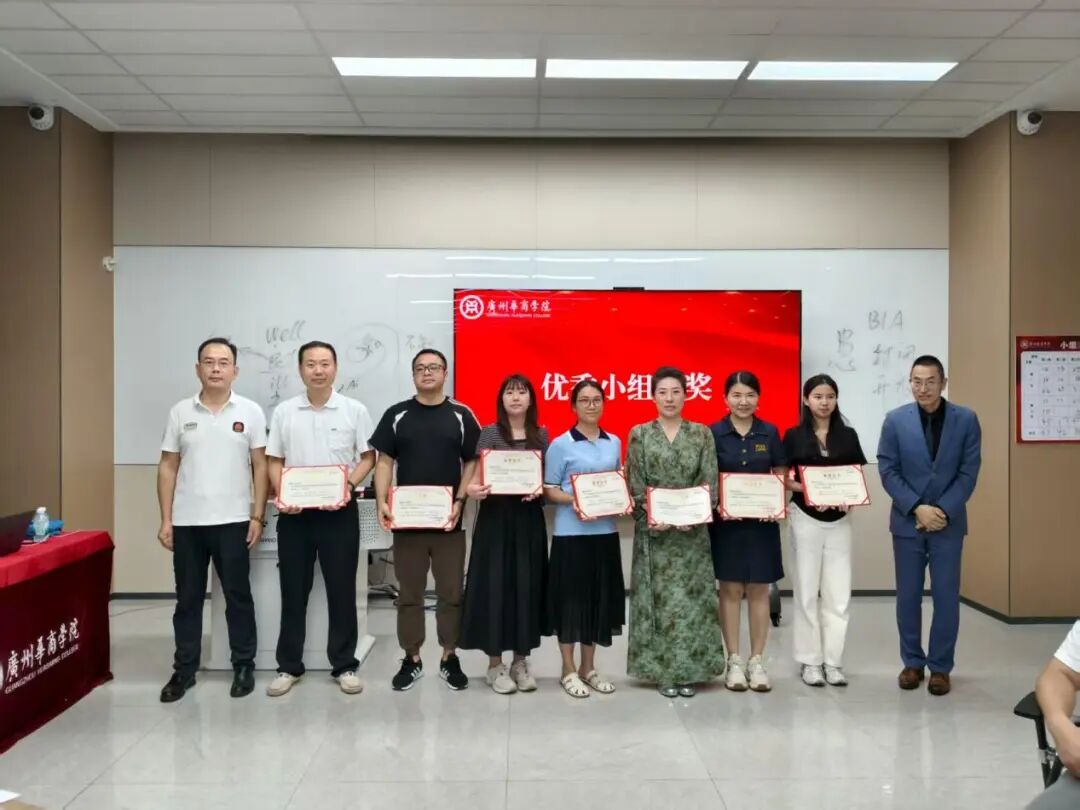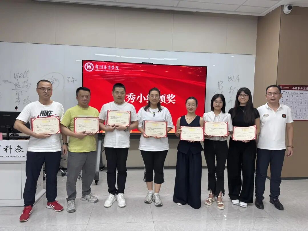华商科教集团培训中心总监助理卢博文为表现突出的第三组、第四组颁发“荣誉证书”。两个小组分别上台领奖。
