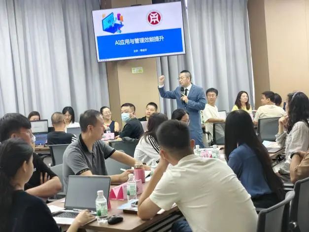 现场学习氛围热烈,线上积极互动。学员们全情投入、积极提问、踊跃交流,深入探讨AI在经营管理中的实际应用,为企业发展注入强劲科技动力。