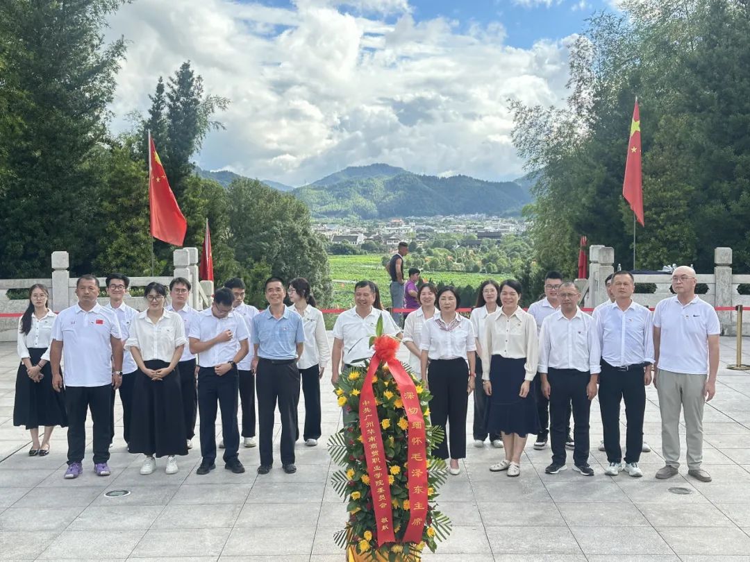 在瞻仰主席园时,全体人员敬献花篮、默哀致敬,缅怀革命先烈为真理献身的崇高气节。