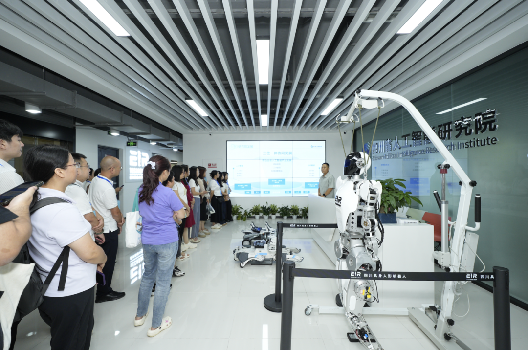 课堂教学之余,学员们走进四川省人工智能研究院,沉浸式体验人工智能技术的产业应用和对现实生活的深远影响。生动直观的教学现场,在拓宽学员科技视野的同时,也为大家在今后的工作中推动人工智能技术赋能高校教育教学创新和个性化学习与探索等提供了新思路。