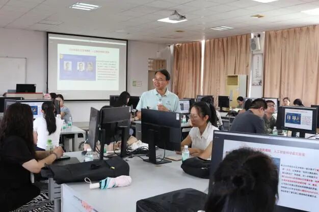 此次培训课程内容丰富且实用,由教育技术学博士柴少明教授担任主讲。柴教授在培训过程中展现出了极高的专业素养和教学热情。他不仅深入讲解了超星学习通平台的操作方法,包括课程创建、资源上传、在线测试、互动交流等核心功能,还结合实际教学案例,详细阐述了如何将这些功能巧妙地融入日常教学中,以实现教学效果的最大化。在AI技术应用方面,柴教授从基础理论知识入手,逐步引导教师们了解AI在教育领域的应用场景,如智能辅助备课、个性化学习指导、作业批改与分析等。为了让教师们更好地理解和掌握这些技术,柴教授精心设计了一系列实操环节。在实操过程中,教师们在柴教授的耐心指导下,亲自动手操作,将所学理论知识转化为实际技能。大家积极参与,相互交流经验,现场学习氛围十分浓厚。
