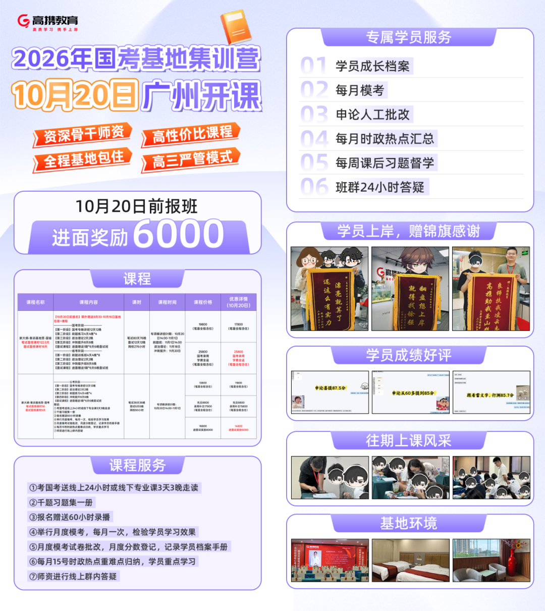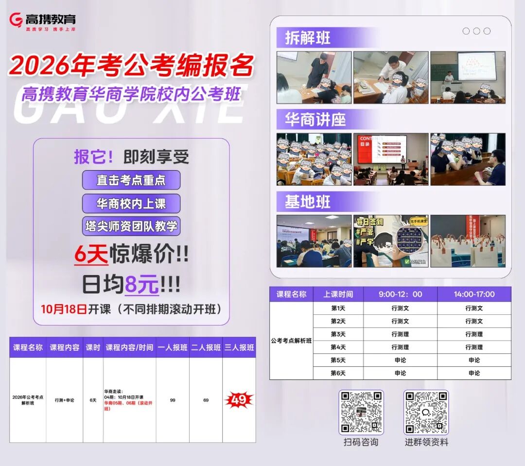 选择对的赛道,让上岸概率翻倍!无论是“校内6天考点突击”,用极致性价比开启备考第一步;还是“基地封闭式集训”,以全周期服务冲刺公考巅峰。