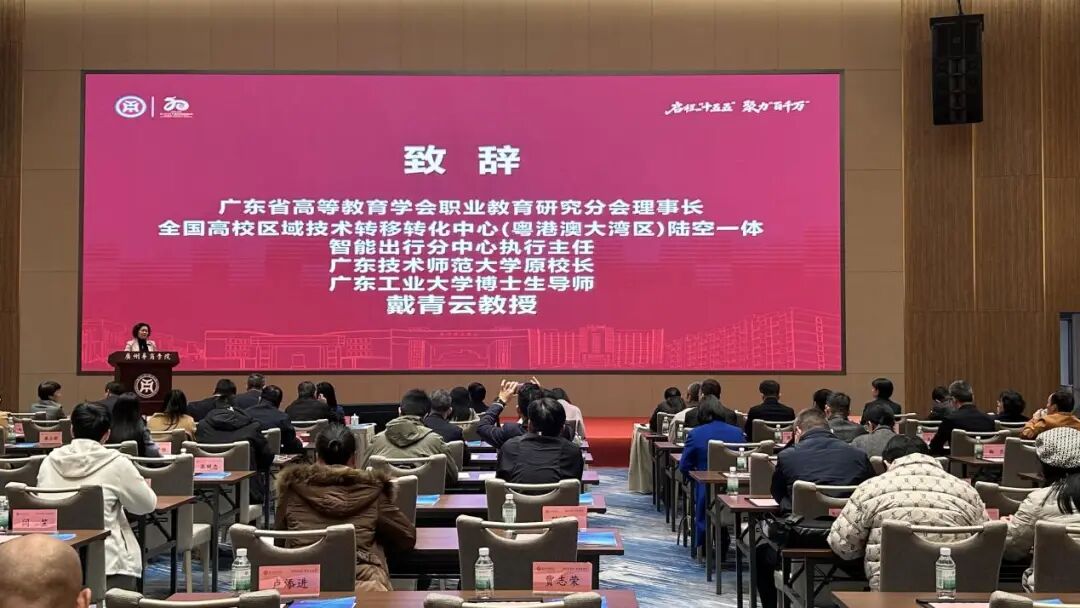 广东技术师范大学副校长邓文新教授、广东省高等教育学会职业教育研究分会理事长戴青云教授先后致辞。他们从办学实践与学术引领角度,分享了对专业设置调整优化的深刻思考,强调职业教育必须紧扣产业脉搏,深化产教融合,培养更多适应产业发展的技术技能人才。